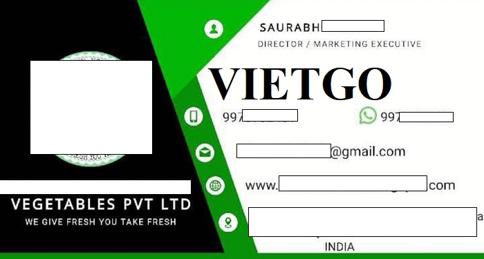 Vừa qua, ông Saurabh đã liên hệ với VIETGO và mong muốn được nhập khẩu pallet gỗ tới thị trường Ấn Độ. Ông Saurabh ██████████ hiện đang là giám đốc marketing của công ty ██████████ Pvt Ltd. Ông là người quản lý trực tiếp công việc tiếp thị và tìm kiếm nguồn cung ứng sản phẩm của công ty. Công ty của ông Saurabh được biết đến là một trong những doanh nghiệp cung cấp thực phẩm rau sạch tại Ấn Độ.