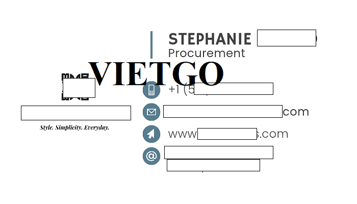 Qua cuộc trò chuyện cũng như trao đổi kỹ lưỡng về đơn hàng, Vietgo nhận thấy ông Stephanie là một vị khách hàng tiềm năng và là cơ hội để hợp tác lâu dài với các Nhà cung cấp châu Á. Vậy nên, Quý nhà cung cấp nào có thể đáp ứng được yêu cầu của vị khách hàng thân thiện này, vui lòng liên hệ và gửi báo giá cho ông qua trong thời gian sớm nhất có thể qua địa chỉ dưới đây.