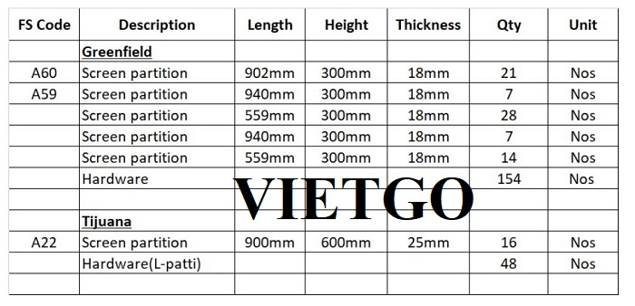 VIETGO xin gửi tới Quý nhà cung cấp thông tin về đơn hàng tấm ngăn bàn làm việc đến từ vị khách hàng tiềm năng, ông Santosh.