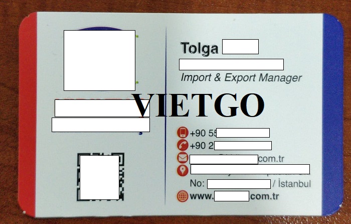Ông Tolga tìm đến VIETGO mong muốn tìm được một nguồn cung cấp hàng mới chất lượng và tiềm năng có thể thay thế được thị trường Trung Quốc. Vị khách hàng tỏ ra rất nhiệt tình và mong muốn sẽ sớm có cơ hội được hợp tác với các nhà cung cấp của Việt Nam. Vì vậy, Quý nhà cung cấp nào có thể đáp ứng cho đơn hàng nhập khẩu của ông Tolga, vui lòng liên hệ với vị khách hàng theo thông tin được cung cấp dưới đây.
