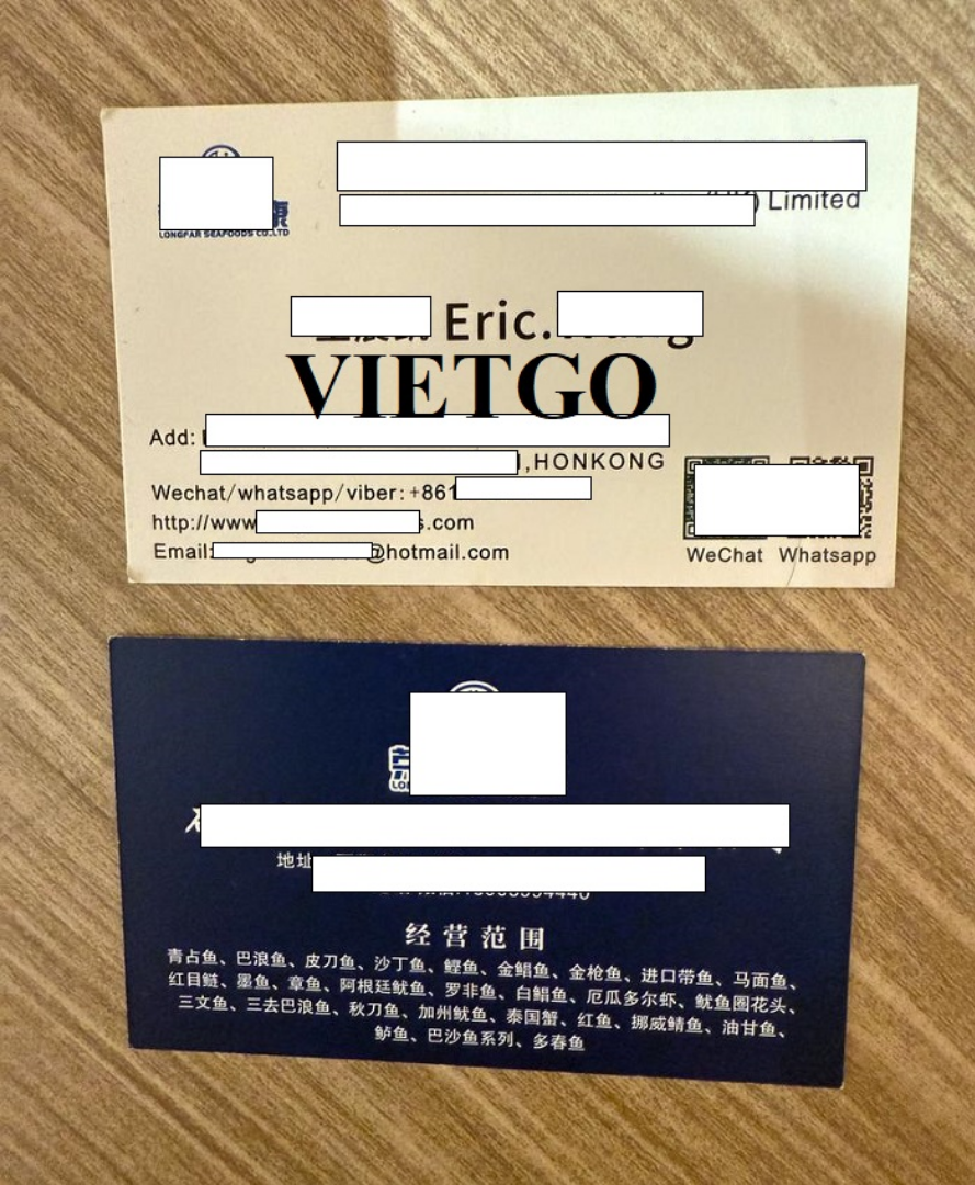 Ông Eric là đại diện của công ty ██████████ (tiền thân là ██████████), có trụ sở chính đặt tại ██████████. Với hơn 10 năm kinh nghiệm trong ngành, ██████████ chuyên xuất nhập khẩu và phân phối thủy sản chất lượng cao. Nhà máy chế biến của công ty ông có các trang thiết bị hiện đại như dây chuyền sản xuất sấy khô tự động, dây chuyền sản xuất phi lê tự động, nhà máy sản xuất vô trùng, phòng thí nghiệm và các cơ sở phần cứng tiên tiến khác. Sản phẩm chính mà công ty ông đang kinh doanh là cá đông lạnh và cá chiên đều được sản xuất theo tiêu chuẩn của HACCP về thủy sản. ██████████ chủ yếu phân phối sản phẩm tới các thị trường Châu Á như Thái Lan, Việt Nam, Indonesia, Philippines, Malaysia, Singapore, thị trường Hoa Kỳ và Châu Âu, thị trường Trung Đông và Châu Phi.