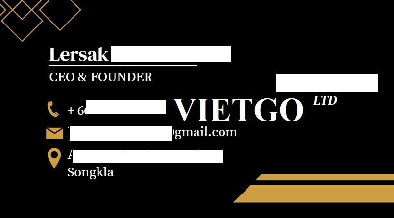 Quý nhà cung cấp nếu có thể đáp ứng các yêu cầu từ ông Lersak xin vui lòng liên hệ và gửi sản phẩm mẫu cũng như báo giá trong thời gian sớm nhất qua địa chỉ liên hệ mà chúng tôi cung cấp sau đây: