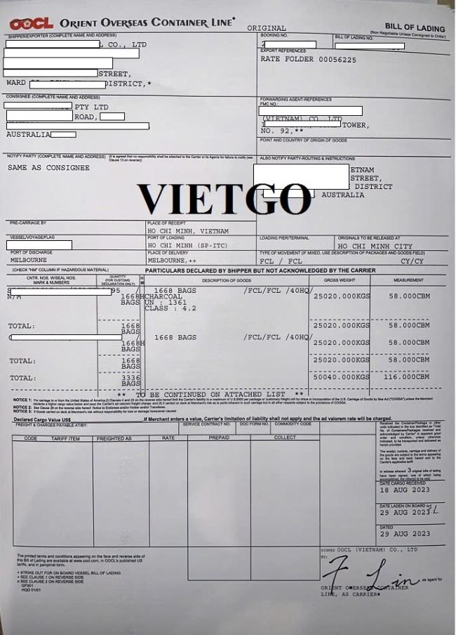 Hình ảnh bản vận đơn nhập khẩu của đơn hàng