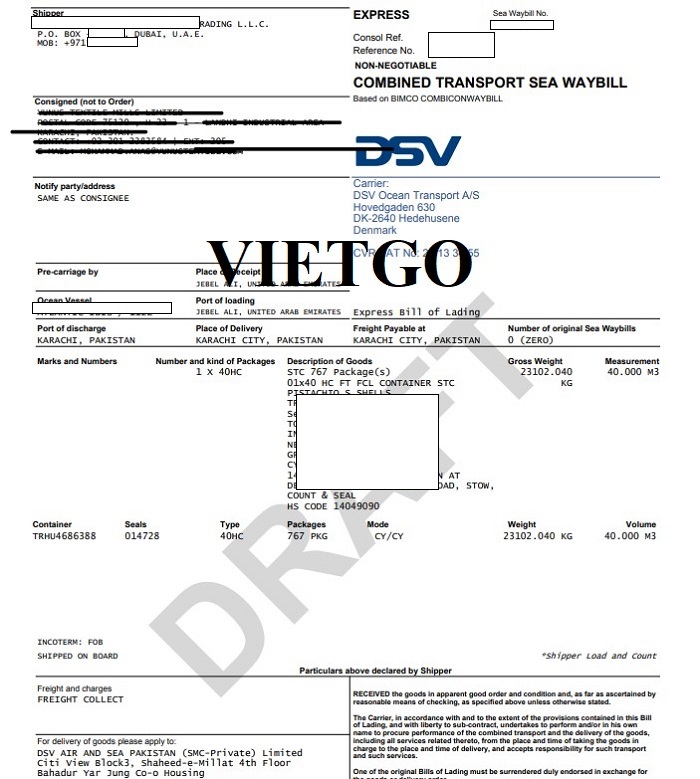 Dưới đây là vận đơn nhập khẩu vỏ hạt dẻ cười của anh Yahya với một đối tác cũ, đối với các đơn hàng mới anh sẽ sử dụng thông tin công ty thương mại mà anh mới thành lập tại Dubai.