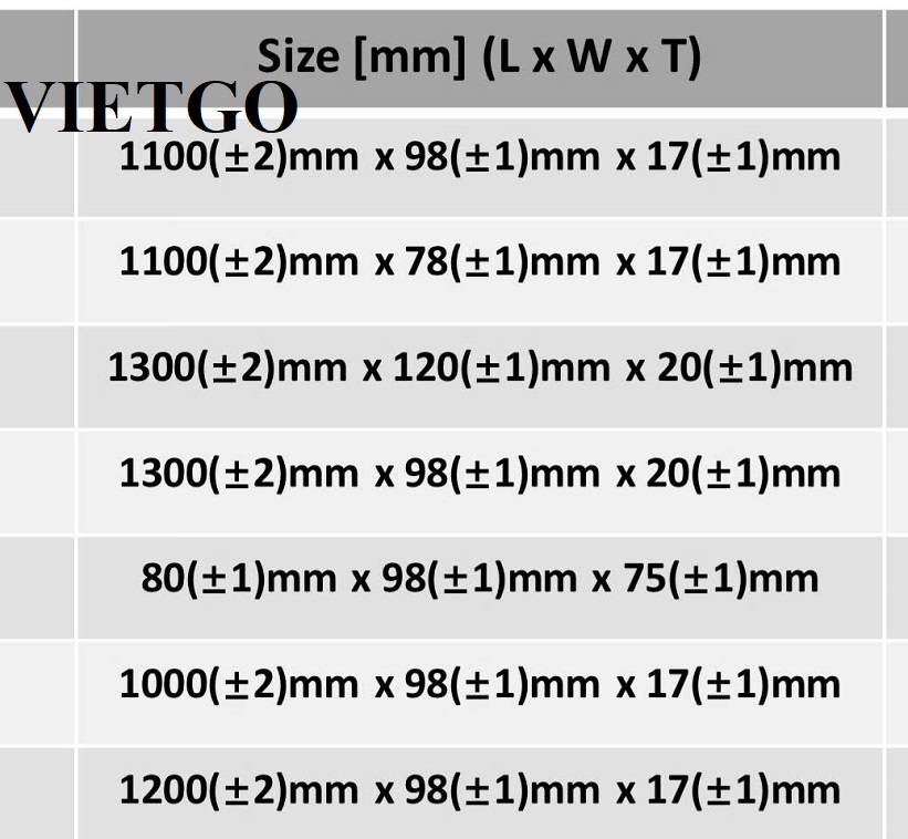Quý nhà cung cấp vui lòng tham khảm bảng kích thước sản phẩm chi tiết do vị khách hàng cung cấp như hình ảnh dưới đây: