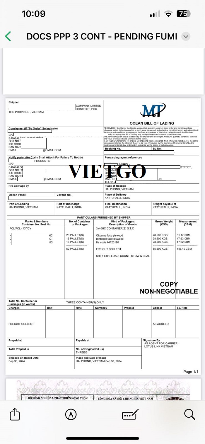 Trước đó, vào ngày 30/09/2024, ông đã nhập khẩu thành công một lô hàng gỗ dán từ Việt Nam, qua đó khẳng định sự tin tưởng vào thị trường và năng lực của các nhà sản xuất Việt. Dưới đây là hình ảnh vận đơn nhập khẩu của giao dịch này.