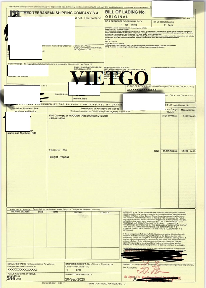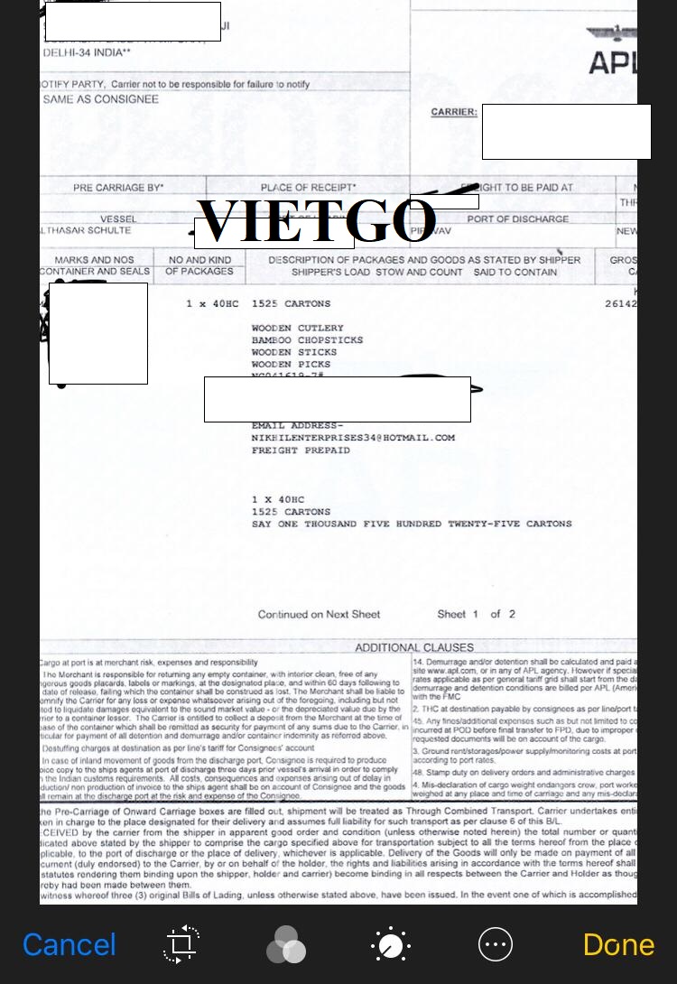 Dưới đây là 02 bản vận đơn chuyến hàng nhập khẩu đũa tre, bộ dụng cụ nhà bếp từ Trung Quốc mà công ty ông Nikhil đã nhập khẩu thành công.