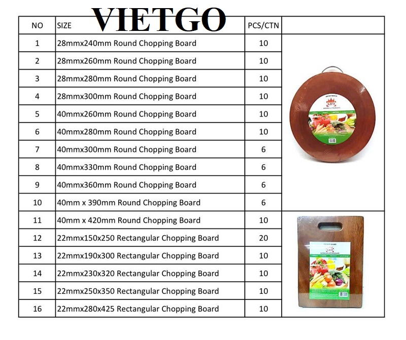 Tại thời điểm này, khách hàng của chúng tôi đang có nhu cầu nhập khẩu sản phẩm thớt gỗ sang thị trường Malaysia, chúng tôi đã tiến hành nghiên cứu và nhận thấy rằng VIETGO là một đối tác lý tưởng, có khả năng kết nối chúng tôi với nhiều nhà cung cấp thớt gỗ, mang lại chất lượng sản phẩm và giá thành tốt nhất. Điều này không chỉ phản ánh mục tiêu chiến lược của chúng tôi trong kinh doanh mà còn thể hiện cam kết của chúng tôi đối với sự đổi mới và đáp ứng nhanh chóng với nhu cầu thị trường.