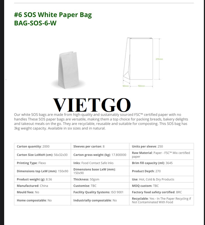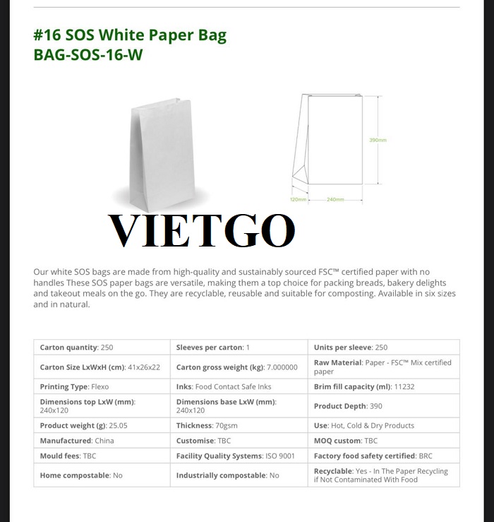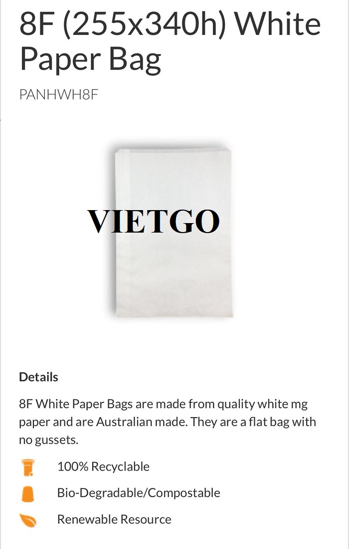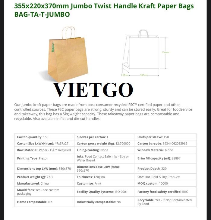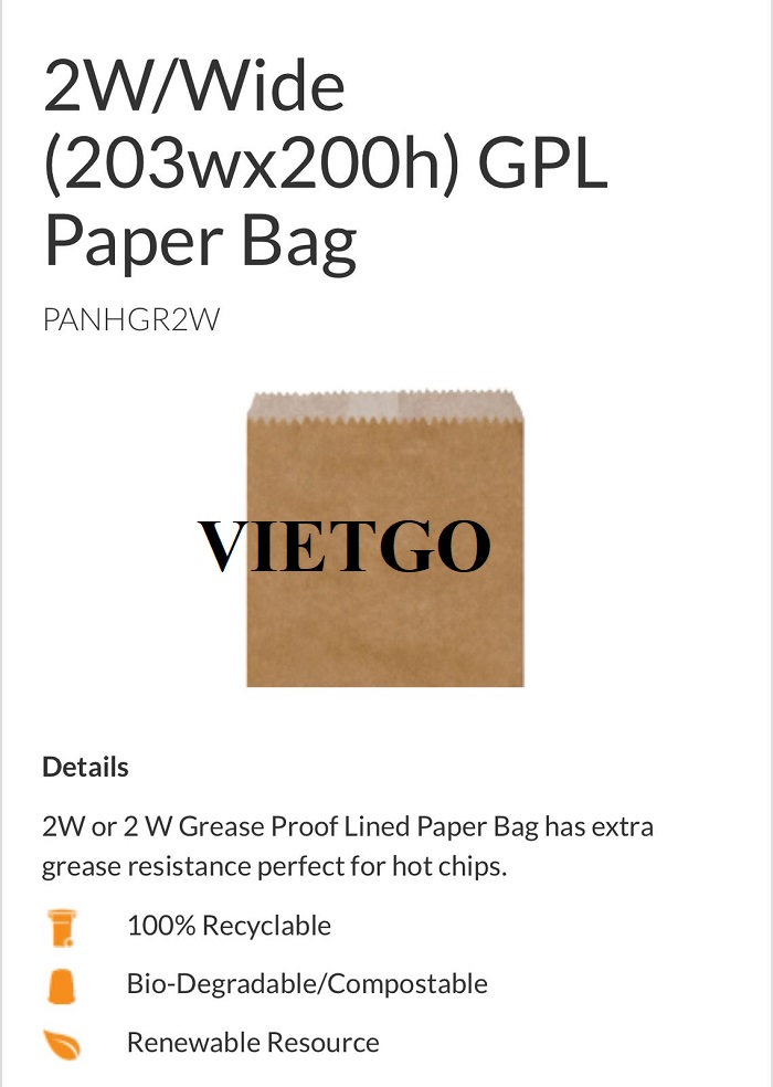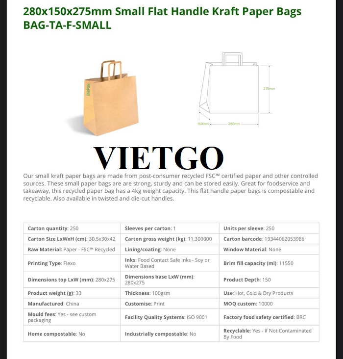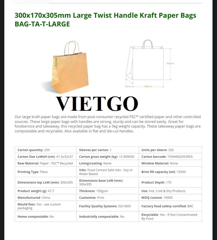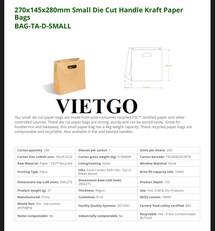 VIETGO xin gửi thông tin về đơn hàng túi giấy đến từ một vị khách hàng tiềm năng, ông Ali.
