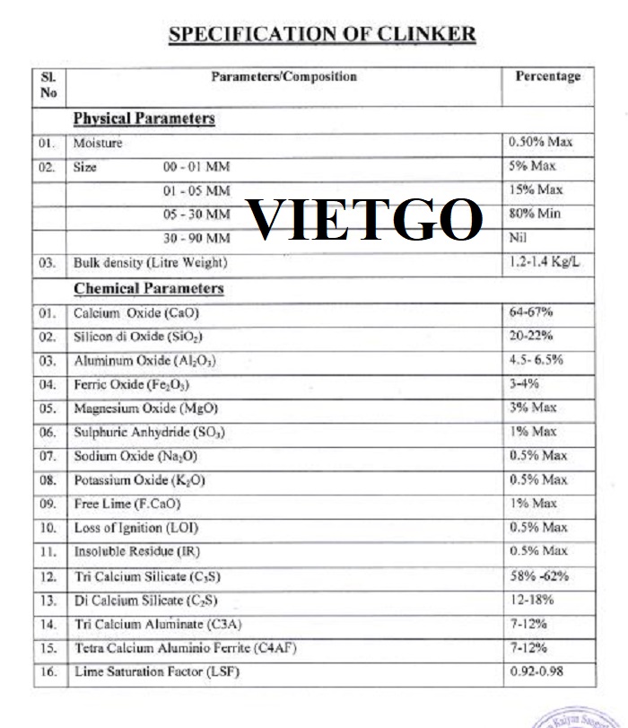 Yêu cầu: Clinker có chất lượng tốt, sử dụng trong sản xuất xi măng
