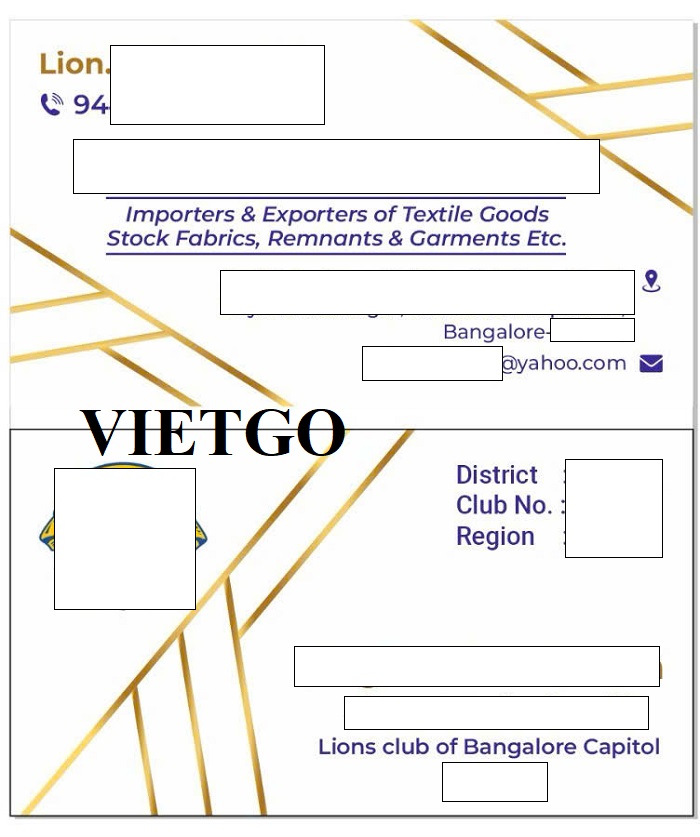 Quý nhà cung cấp nếu có thể đáp ứng các yêu cầu từ ông Rajesh xin vui lòng liên hệ và gửi sản phẩm mẫu cũng như báo giá trong thời gian sớm nhất qua địa chỉ liên hệ mà chúng tôi cung cấp sau đây: