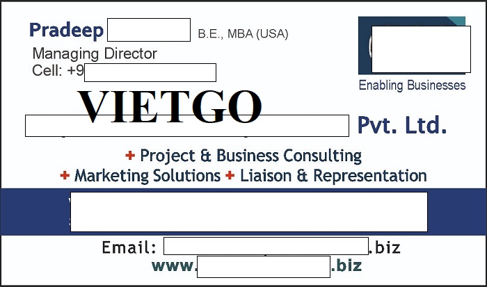Ông Pradeep ██████████- vị khách hàng của VIETGO lần này đại diện mua hàng đến từ Ấn Độ. Hiện tại ông đang là Giám đốc quản lý của công ty ██████████, có trụ sở tại Bengaluru, Ấn Độ. Môi trường trong nước và toàn cầu luôn thay đổi, liên quan đến kinh doanh, chính trị, xã hội, công nghệ đã trở thành thách thức đối với việc quản lý doanh nghiệp. Do đó, ông Pradeep đã thành lập công ty để hỗ trợ các tổ chức thông qua dịch vụ tư vấn chuyên nghiệp của mình để tăng cường, nỗ lực cải thiện và đạt được các mục tiêu đã đề ra.