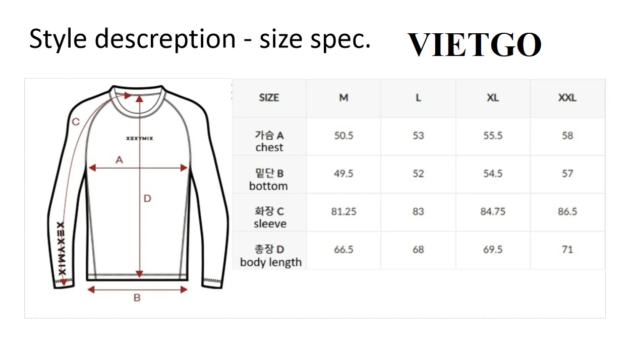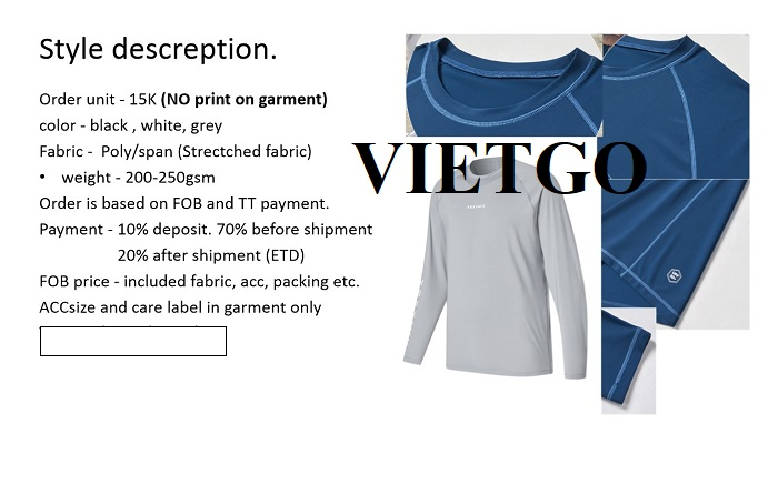 VIETGO xin gửi tới Quý vị thông tin đơn hàng nhập khẩu áo phông thể thao dài tay của ông Brian – đại diện doanh nghiệp tại Hàn Quốc.