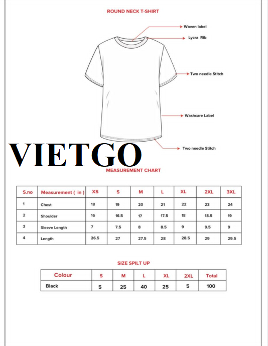 VIETGO xin được gửi tới Quý nhà cung cấp thông tin về đơn hàng áo T-shirt đến từ ông Basit.