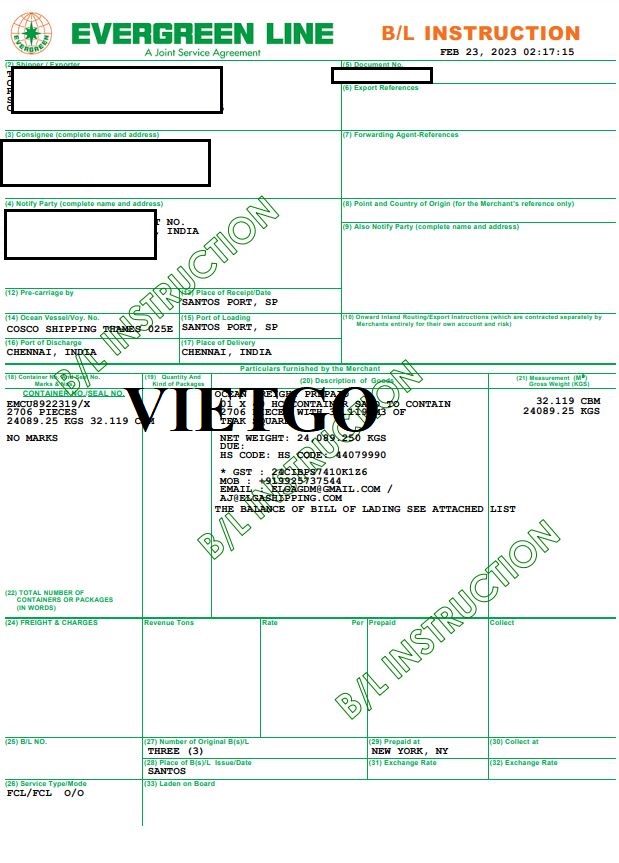 Hình ảnh bản vận đơn của chuyến hàng ông Anil nhập khẩu thành công 1 container 40HC sản phẩm chè hộp từ Brazil đến Ấn Độ
