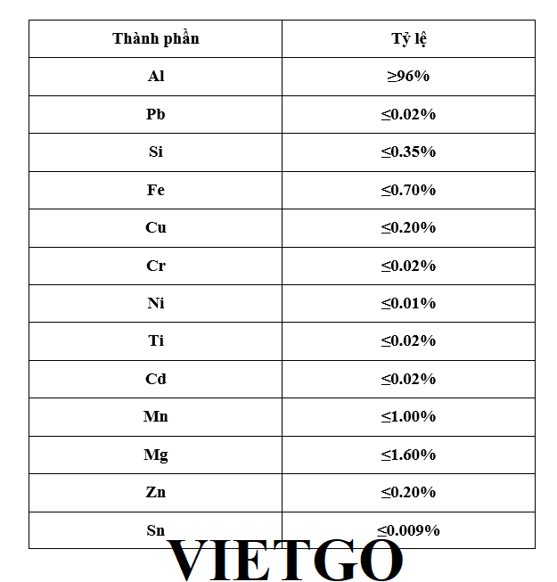 Loại: Nhôm thỏi có hàm lượng Al ≥96%