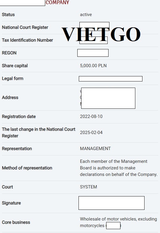 Ông Yevgen hiện là Chủ tịch kiêm Tổng Giám đốc của ██████████, một công ty trách nhiệm hữu hạn có trụ sở tại Warsaw, Ba Lan, được thành lập từ năm 2022 và đang hoạt động hợp pháp theo hệ thống National Court Register của Ba Lan. Công ty có vốn điều lệ ████████████████████PLN, đăng ký đầy đủ mã số thuế, REGON và có quyền đại diện pháp lý rõ ràng.