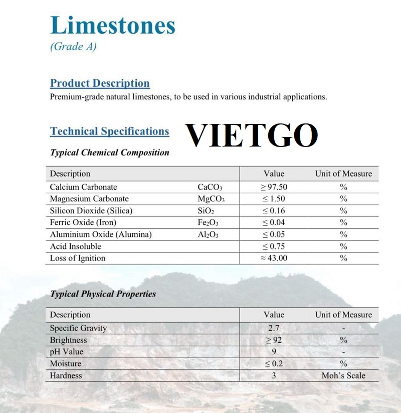 Vừa qua, VIETGO đã nhận được liên hệ từ ông Prakash ██████████– đại diện công ty ██████████ trao đổi về mong muốn tìm kiếm nhà cung cấp cho đơn hàng nhập khẩu đá vôi hàng tháng của mình. Vị khách hàng đã gửi thông số yêu cầu chi tiết đối với sản phẩm và đang rất nóng lòng nhận được báo giá từ nhà cung cấp để có thể thực hiện đơn hàng trong thời gian sớm nhất.