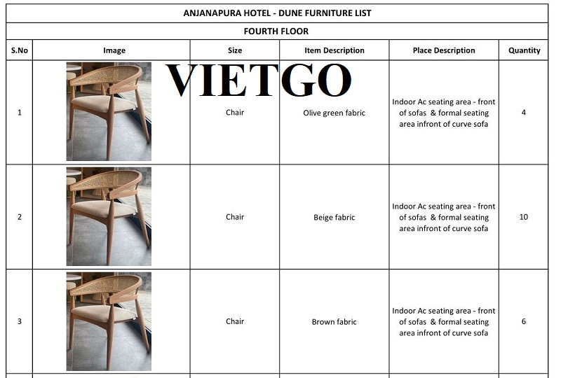 VIETGO xin gửi tới Quý nhà cung cấp thông tin về đơn hàng nội thất đến từ vị khách hàng tiềm năng, ông Jayachandran.
