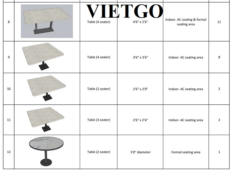 Mục đích sử dụng: Nhu cầu về đồ nội thất rời cho một nhà hàng ở Bengaluru