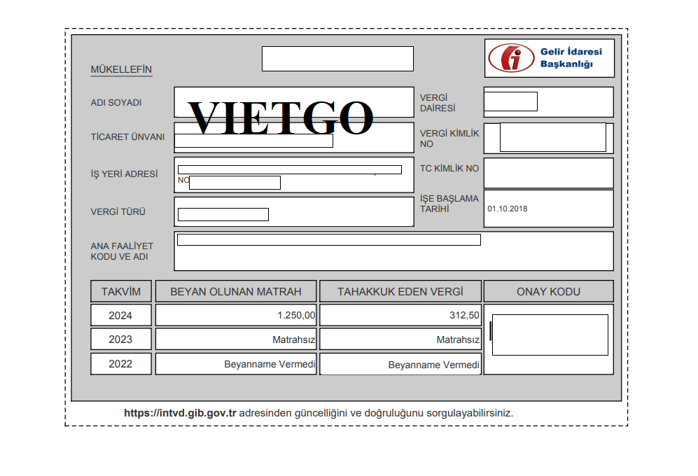 Hình ảnh chứng nhận đăng ký thuế của vị khách hàng