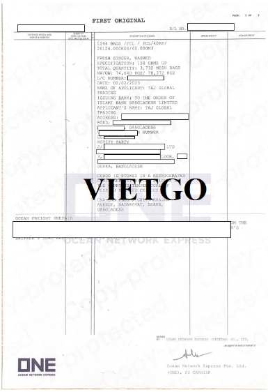 Dưới đây là bản vận đơn nhập khẩu gừng từ Việt Nam vào tháng 2/2023 do vị khách hàng thực hiện thành công:
