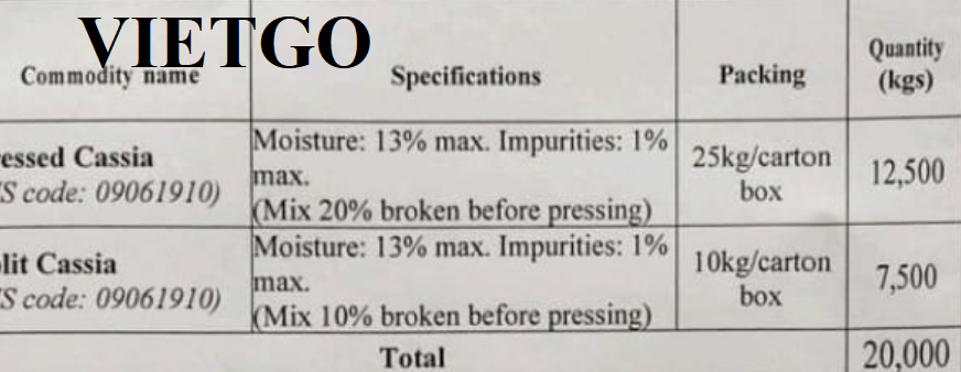 VIETGO xin gửi tới nhà cung cấp thông tin về đơn hàng nhập khẩu quế ép đến từ vị khách hàng thân thiết của VIETGO, ông Faraz.