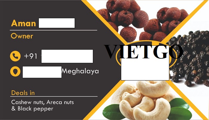 Ông Aman ██████████ - vị khách hàng của VIETGO lần này đại diện mua hàng đến từ Ấn Độ. Hiện tại ông đang là Chủ sở hữu của công ty ██████████, có trụ sở tại Ấn Độ. Đây là công ty chuyên kinh doanh và xuất nhập khẩu các sản phẩm nông sản như hạt điều, hạt tiêu, hạt Areca,... Ông muốn mua 1 container 20ft hạt điều để cung cấp cho khách hàng tại Ấn Độ của mình, sau đó ông sẽ mở rộng và tăng thêm số lượng tùy thuộc vào nhu cầu của thị trường. Đây là một trong những nơi tiêu thụ hạt điều lớn trên thế giới nhờ vào sự đa dạng trong nền ẩm thực, do đó đây là cơ hội để ông có thể phát triển hoạt động kinh doanh của mình.