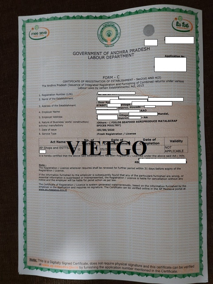 Hình ảnh đăng ký kinh doanh công ty của vị khách hàng