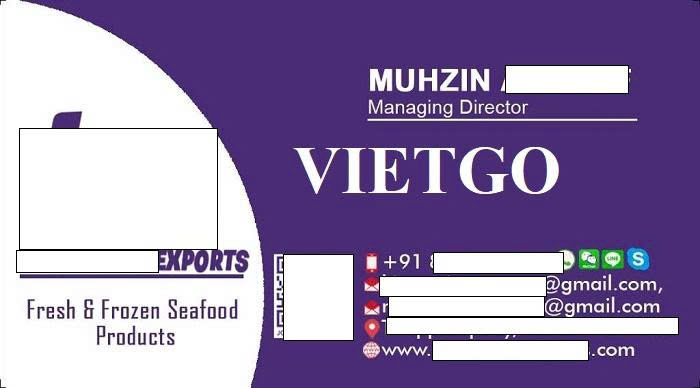 Ông Muhzin là một vị khách hàng quen thuộc của VIETGO. Vị khách hàng đã làm việc cùng các nhà cung cấp của VIETGO trong nhiều đơn hàng nhập khẩu thủy hải sản trước đó. Trong đơn hàng lần này, ông mong muốn sẽ tiếp tục cùng hợp tác với các nhà sản xuất, nhà cung cấp trong hệ thống của VIETGO. Bởi vậy, quý nhà cung cấp mong muốn hợp tác cùng vị khách hàng xin vui lòng liên hệ và báo giá cho ông trong thời gian sớm nhất theo thông tin dưới đây: