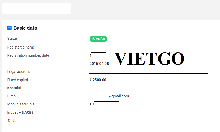 Địa chỉ công ty: ██████████ Estonia