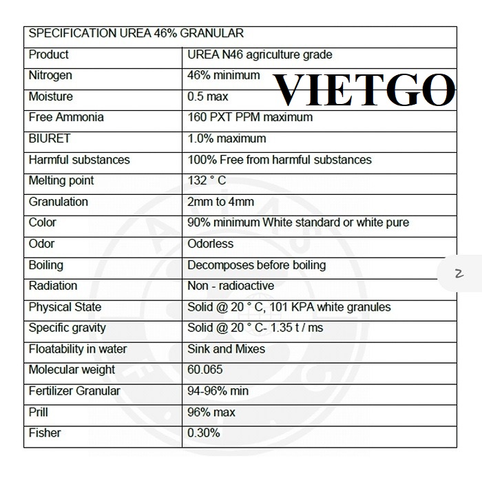 TÊN SẢN PHẨM: PHÂN BÓN UREA N46