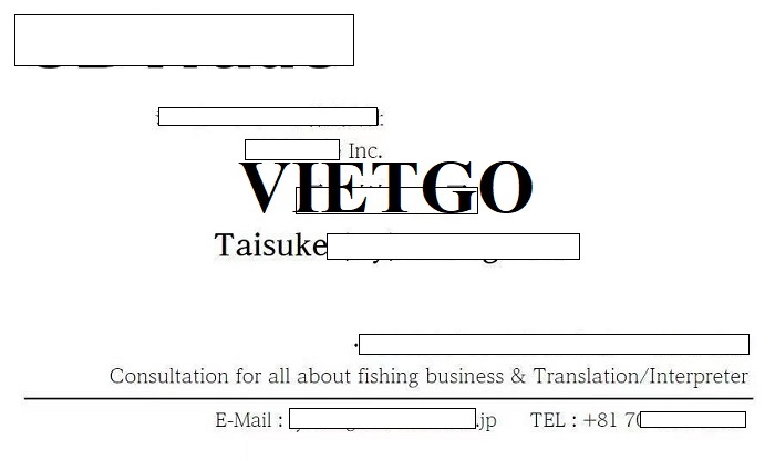 Vừa qua, ông ông Taisuke, Giám đốc điều hành kiêm chủ sở hữu của công ty ██████████. có trụ sở tại Nhật Bản đã liên hệ với VIETGO để bày tỏ mong muốn tìm kiếm đại diện thương mại cho các hoạt động kinh doanh, nhập khẩu của công ty tại Việt Nam.