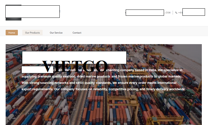 ██████████ là công ty xuất khẩu và thương mại quốc tế có trụ sở tại Ấn Độ. Công ty chuyên cung cấp hải sản, hải sản khô và hải sản đông lạnh chất lượng cao cho thị trường toàn cầu. Với mạng lưới nguồn cung ứng mạnh mẽ và tiêu chuẩn chất lượng nghiêm ngặt, ██████████ đảm bảo mọi đơn hàng đều đáp ứng các yêu cầu xuất khẩu quốc tế. Công ty tập trung vào độ tin cậy, giá cả cạnh tranh và giao hàng đúng hẹn trên toàn thế giới. Bên cạnh đó, công ty ông cũng cung cấp dịch vụ thương mại, giúp người mua và người bán quốc tế kết nối thông qua quy trình chứng từ, kiểm tra và vận chuyển thuận lợi.