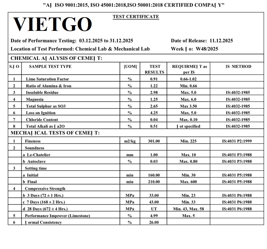 Ông Umar đã hợp tác cùng các nhà cung cấp của VIETGO trong nhiều đơn hàng trước đó. Với đơn hàng lần này, ông mong muốn sớm nhận được báo giá từ các nhà cung cấp xi măng của VIETGO. Bởi vậy, quý nhà cung cấp nào mong muốn hợp tác cùng vị khách hàng xin vui lòng liên hệ và báo giá cho ông trong thời gian sớm nhất theo thông tin dưới đây: