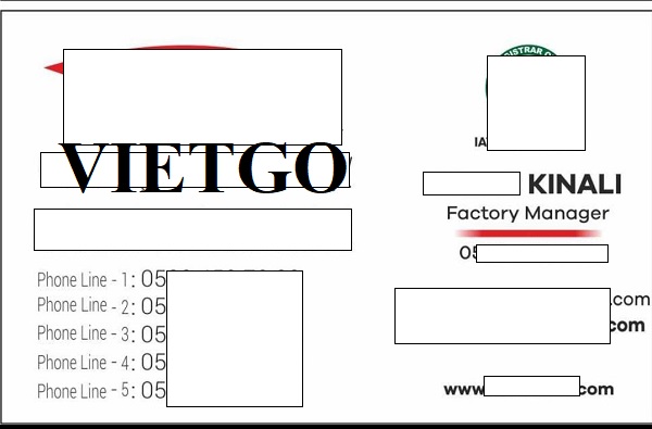 Liên hệ với VIETGO, ông Kinali hy vọng phía công ty sẽ giúp ông tiến hành thành công đơn hàng. Vậy, VIETGO rất mong Quý nhà cung cấp vui lòng gửi phản hồi đến vị khách hàng trong thời gian sớm nhất qua địa chỉ thông tin chi tiết dưới đây.