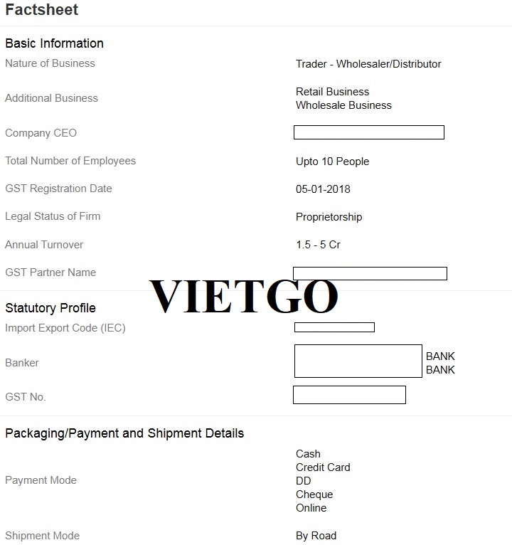 VIETGO xin gửi tới Quý nhà cung cấp thông tin đơn hàng, VIETGO chúc Quý vị có được một thương vụ thành công!
