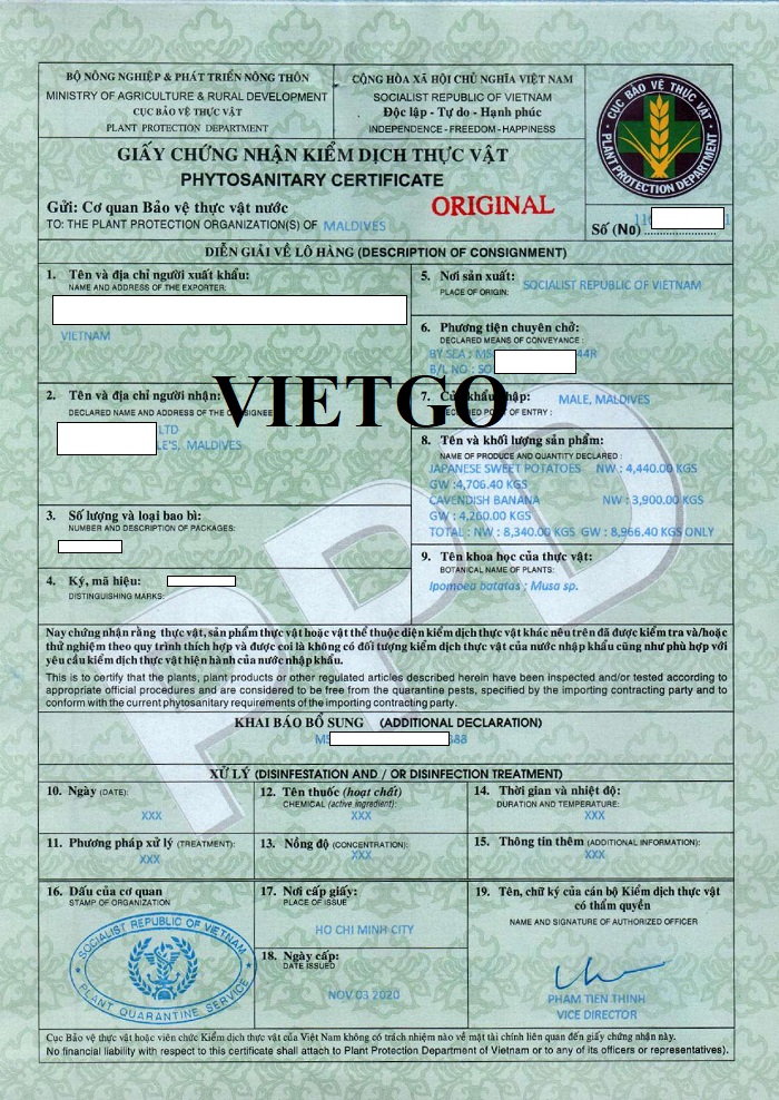 Hình ảnh bộ chứng từ kiểm dịch thực vật