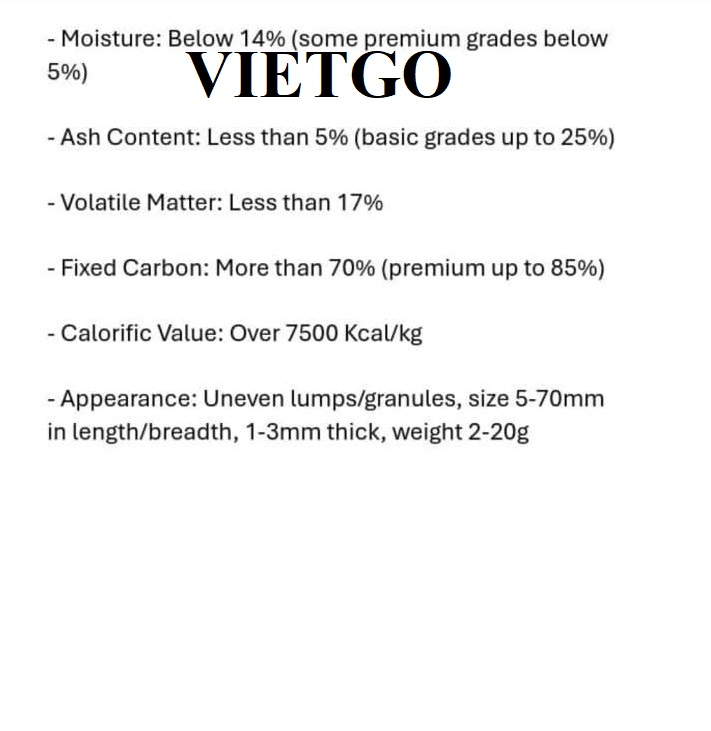 Giá trị nhiệt lượng: Trên 7500 Kcal/kg