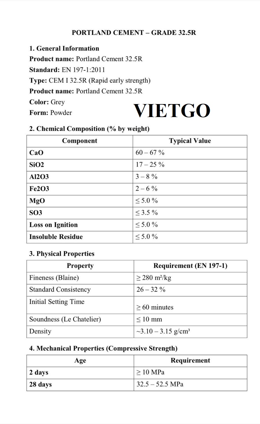 Hình ảnh thông số kỹ thuật tham khảo xi măng mác 32.5R