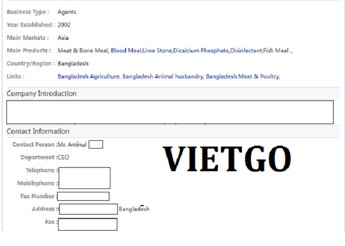 Công ty ông là một trong những đơn vị hàng đầu tại Bangladesh hoạt động trong lĩnh vực nông nghiệp, chăn nuôi gia súc, thịt & gia cầm. Hiện tại, công ty ông phải thường xuyên nhập khẩu các sản phẩm như ngô, cám lúa mì, bột gluten ngô, bột đá, bột cá sấy khô, dầu cá từ nước ngoài. Ông Islam cho biết công ty ông thường nhập khẩu trực tiếp để phục vụ nhu cầu sản xuất cũng như bán lại cho các nhà phân phối khác tại Bangladesh. Doanh thu hàng năm của công ty hiện nay rơi vào khoảng từ 15 đến 25 triệu USD.