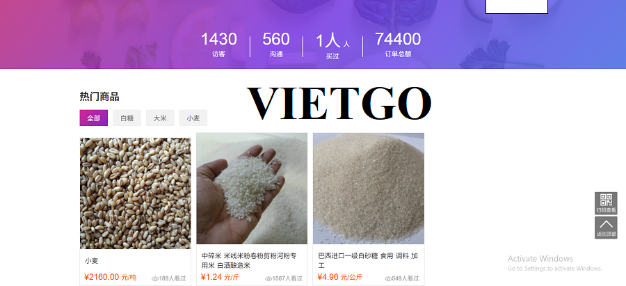 Liên hệ với VIETGO lần này, vị khách hàng đại diện cho ██████████ để tìm kiếm nguồn cung cấp cho mặt hàng gạo nhằm sử dụng trong thức ăn chăn nuôi. Vậy, Quý nhà cung cấp có thể đáp ứng được yêu cầu của vị khách hàng, vui lòng liên hệ và báo giá cho ông theo thông tin liên hệ dưới đây: