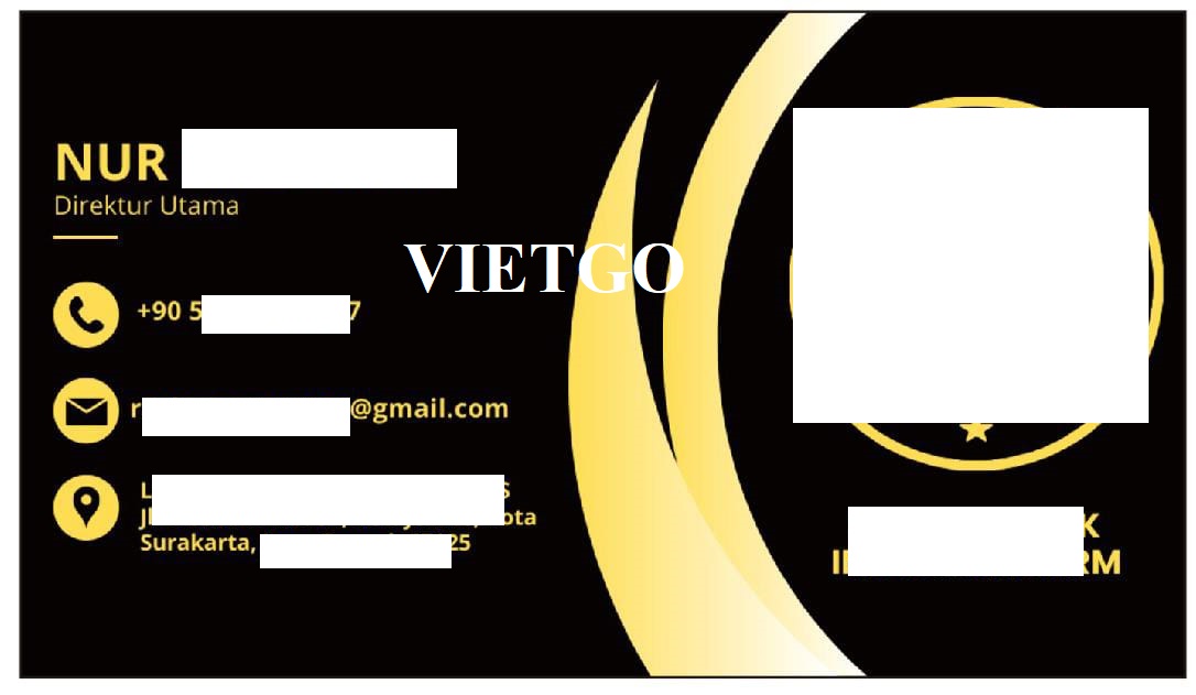 Qua cuộc trò chuyện cũng như trao đổi kỹ lưỡng về đơn hàng, Vietgo nhận thấy ông Nur là một vị khách hàng tiềm năng và là cơ hội để hợp tác lâu dài với các Nhà cung cấp châu Á. Vậy nên, Quý nhà cung cấp nào có thể đáp ứng được yêu cầu của vị khách hàng thân thiện này, vui lòng liên hệ và gửi báo giá cho ông qua trong thời gian sớm nhất có thể qua địa chỉ dưới đây.