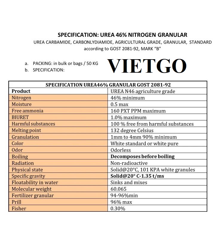 TÊN SẢN PHẨM: PHÂN BÓN URE
