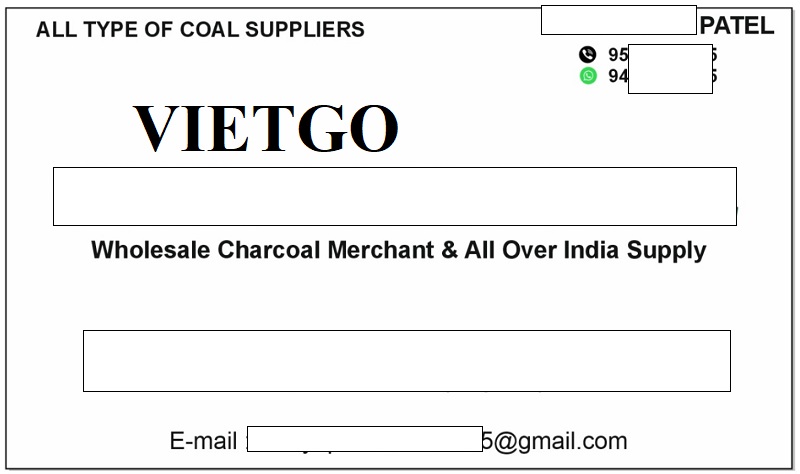 VIETGO xin gửi tới Quý vị thông tin đơn hàng nhập khẩu than củi mùn cưa của ông Patel – Vị khách hàng người Ấn Độ.