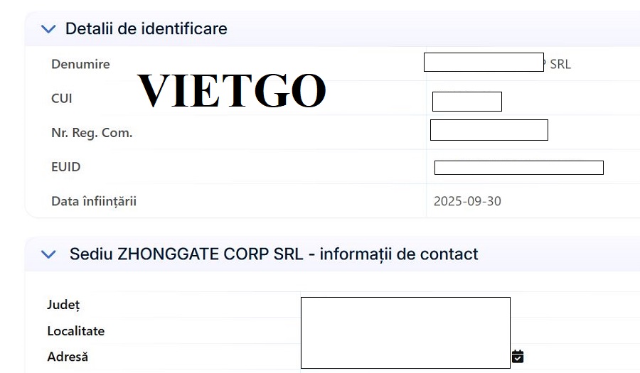Địa chỉ trụ sở đăng ký: ██████████, Romania