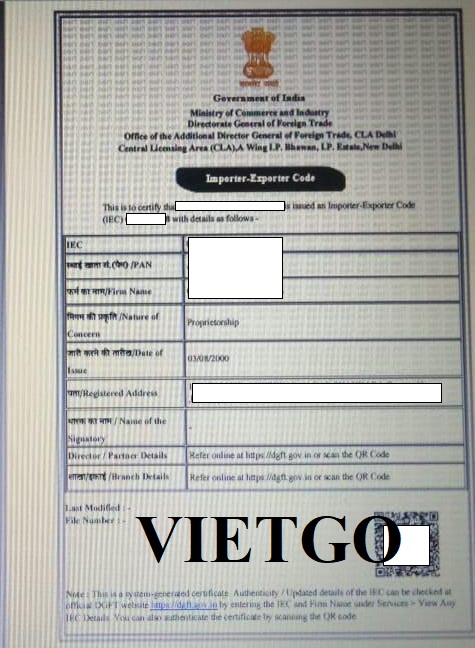 Hình ảnh giấy phép xuất nhập khẩu của công ty vị khách hàng