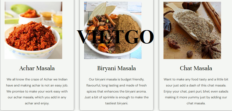 Gia vị là một trong những sản phẩm không thể thiếu, mang lại hương vị cho món ăn tại Ấn Độ. Các sản phẩm này đều là 100% nguyên chất, được chế biến bằng phương pháp truyền thống và không chứa màu nhân tạo, hương liệu hay chất bảo quản. Ông Abdul đang có dự định thu mua nhiều loại gia vị từ các quốc gia khác, trong đó có Việt Nam. Do đó, ông đang tìm kiếm các nhà cung cấp uy tín, có khả năng cung ứng ổn định để hợp tác lâu dài. Liên hệ với VIETGO lần này, ông hy vọng có thể nhận được báo giá sớm và trao đổi sâu hơn về đơn hàng.