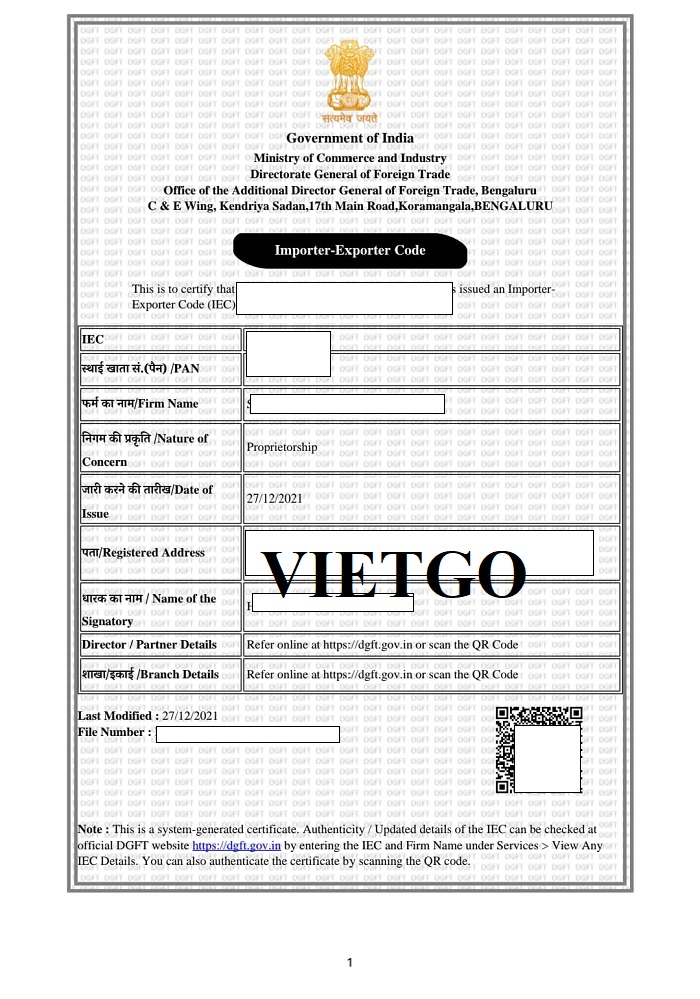 ██████████ là doanh nghiệp hoạt động trong lĩnh vực xuất nhập khẩu, được đăng ký và cấp mã bởi Bộ Thương mại và Công nghiệp Ấn Độ vào ngày 27/12/2021, đánh dấu bước khởi đầu quan trọng trong việc tham gia vào các hoạt động thương mại quốc tế hợp pháp và minh bạch.