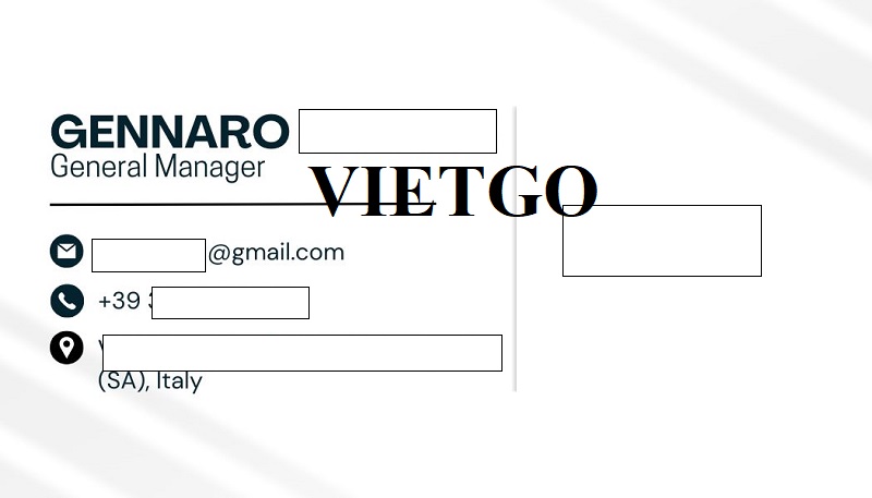 Ông Gennaro mong muốn sớm nhận được báo giá từ các nhà cung cấp của VIETGO. Bởi vậy, quý nhà cung cấp nào mong muốn hợp tác cùng vị khách hàng xin vui lòng liên hệ và báo giá cho ông trong thời gian sớm nhất theo thông tin dưới đây: